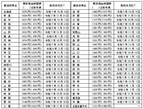 令和7年度の地域別最低賃金について、その結果が厚生労働省から公表されました。