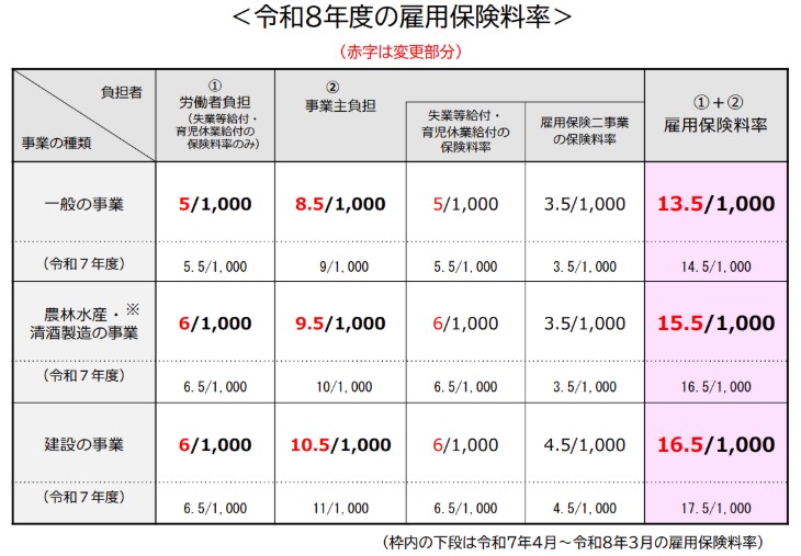 厚生労働省より令和8年度の雇用保険料率が発表されています。